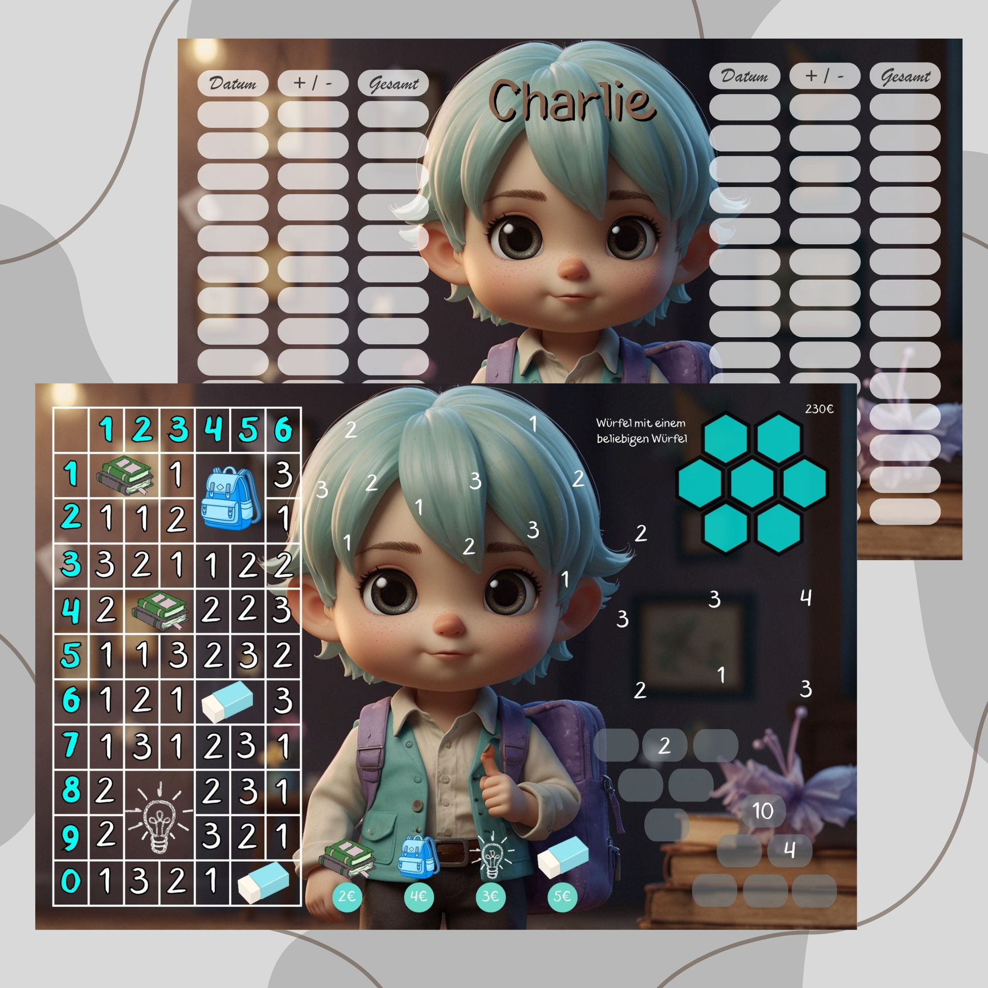 3er-Klappkarte ,,Charlie,, zum Thema Schule ohne Würfel, ohne Lose