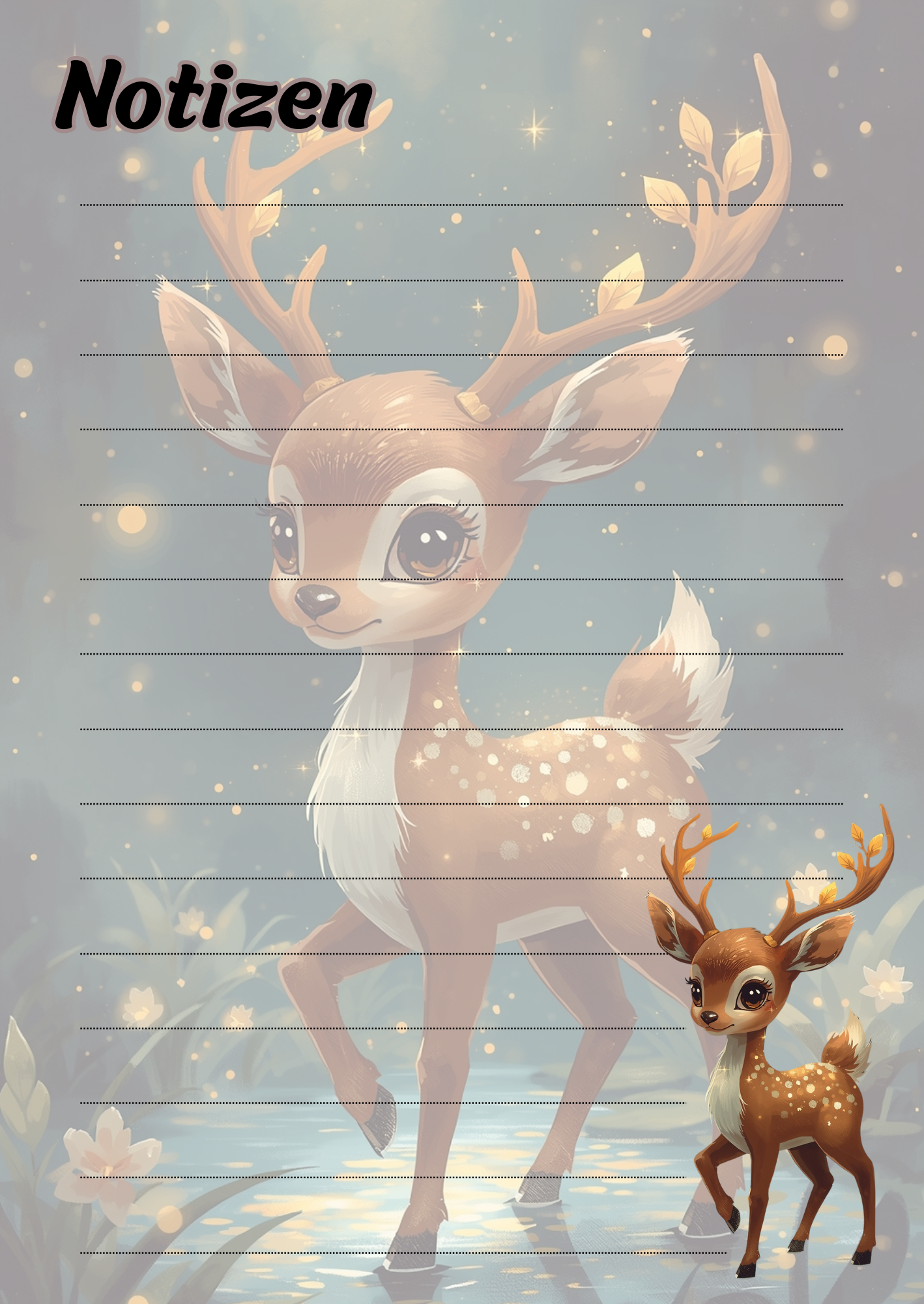 A5 Notizblock, liniert, Reh
